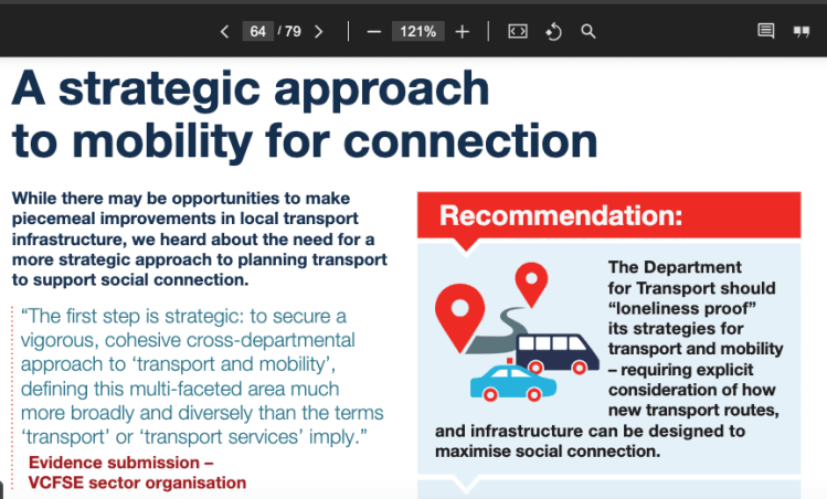 One of their big recommendations is to ‘loneliness-proof’ transport strategies.