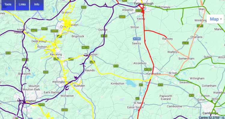 Above – the old Cambridge – Huntingdon – Kettering route.